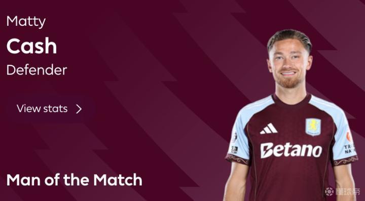 打进唯一进球助维拉战胜曼城,卡什当选全场最佳球员