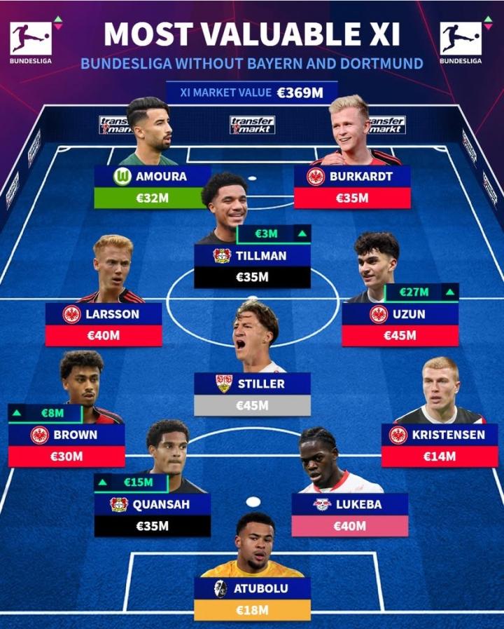 不含拜仁和多特蒙德球员的德甲身价最高阵容: