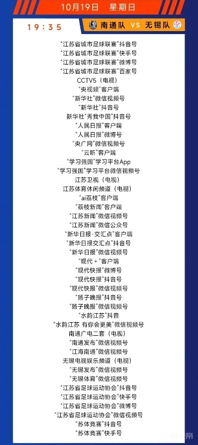 10月19日(本周日)19时35分,“苏超”半决赛次回合较量中,南通队将坐镇主场与无锡队展开对决。