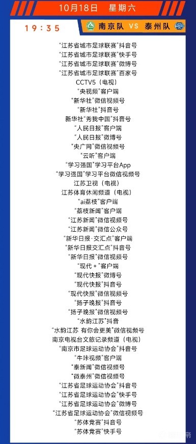 南京队对阵泰州队赛事转播安排
